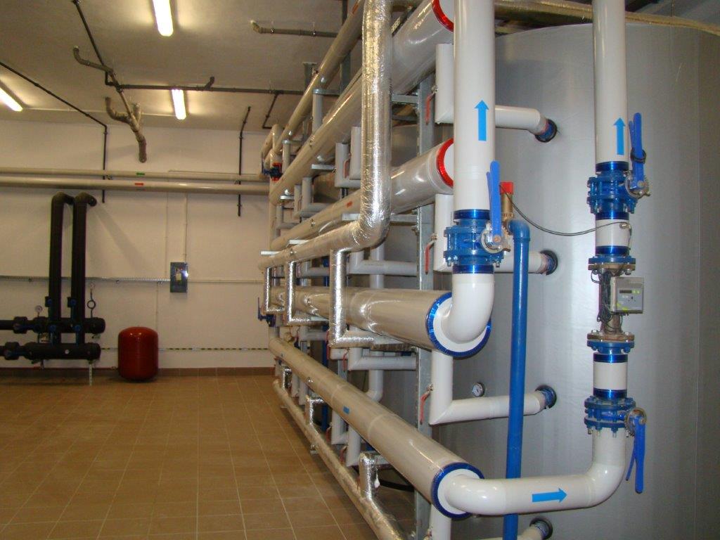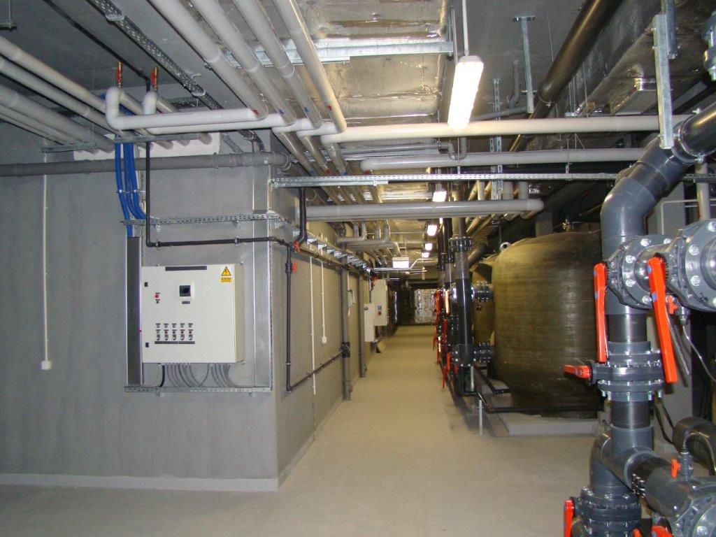 Instalacja Pomp ciepła 2* 85 Kw. .Kotłowni 550 Kw. na biomasę firmy Herz ,kolektory słoneczne 80 płyt ,instalacje C.O I Wod – Kan Kryta pływalnia Strawczynek Koło Kielc